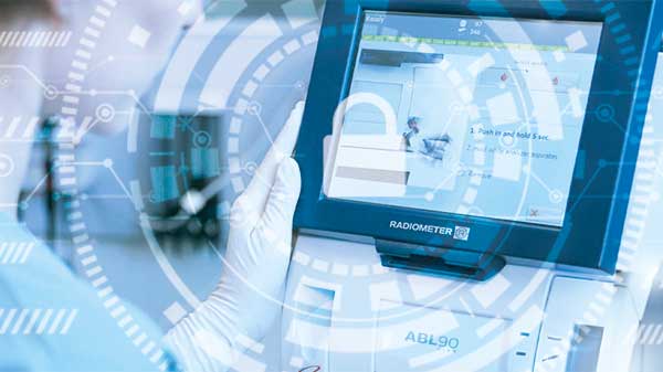 ABL90 FLEX, bir dizi savunma katmanında hastane güvenlik önlemleriyle birlikte çalışan Radiometer siber güvenlik modeline dayanır.
