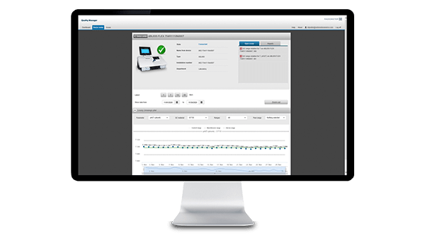 Kalite Yöneticisi, bağlı Radiometer ABL analizörlerinizden günlük ve aylık QC performansını gerçek zamanlı olarak toplar. Bu verileri tek bir erişim noktasından inceleyebilir, işleyebilir ve rapor edebilirsiniz - üstelik masanızdan ayrılmadan.